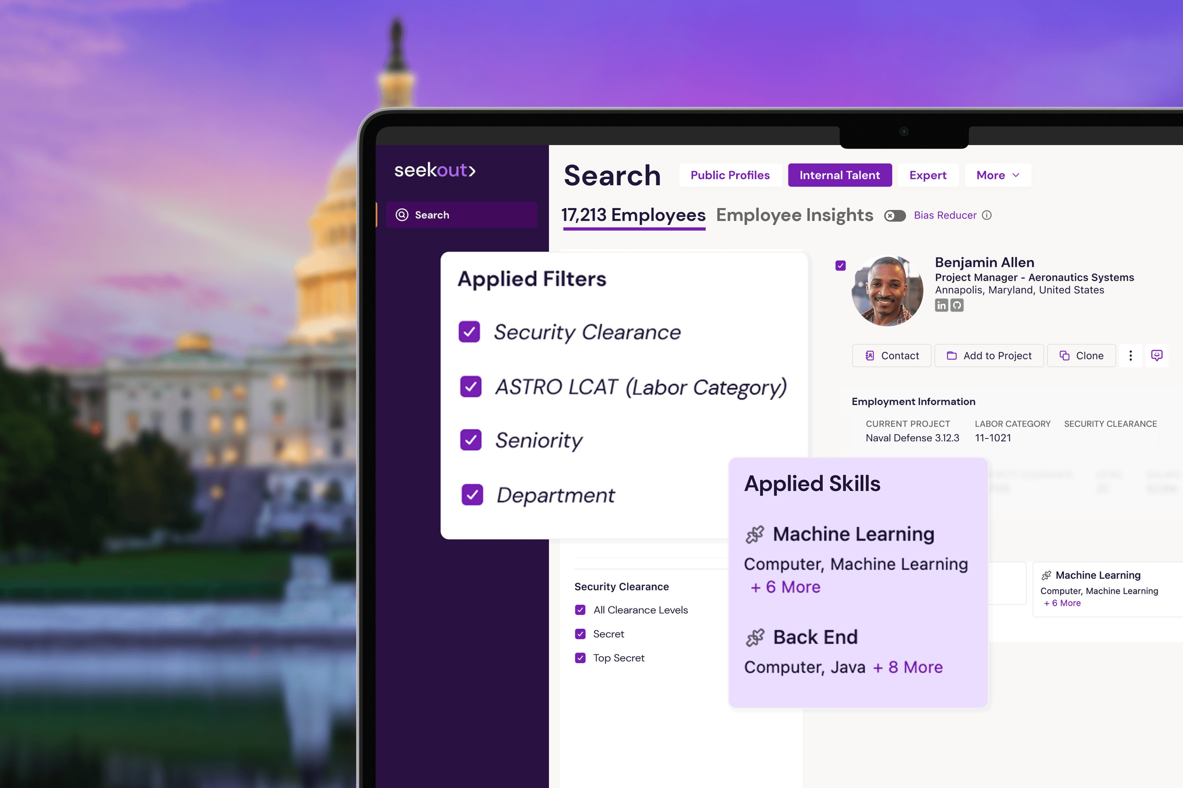 SeekOut helps industry leaders retain and redeploy top talent, accelerate project staffing, and win more business.