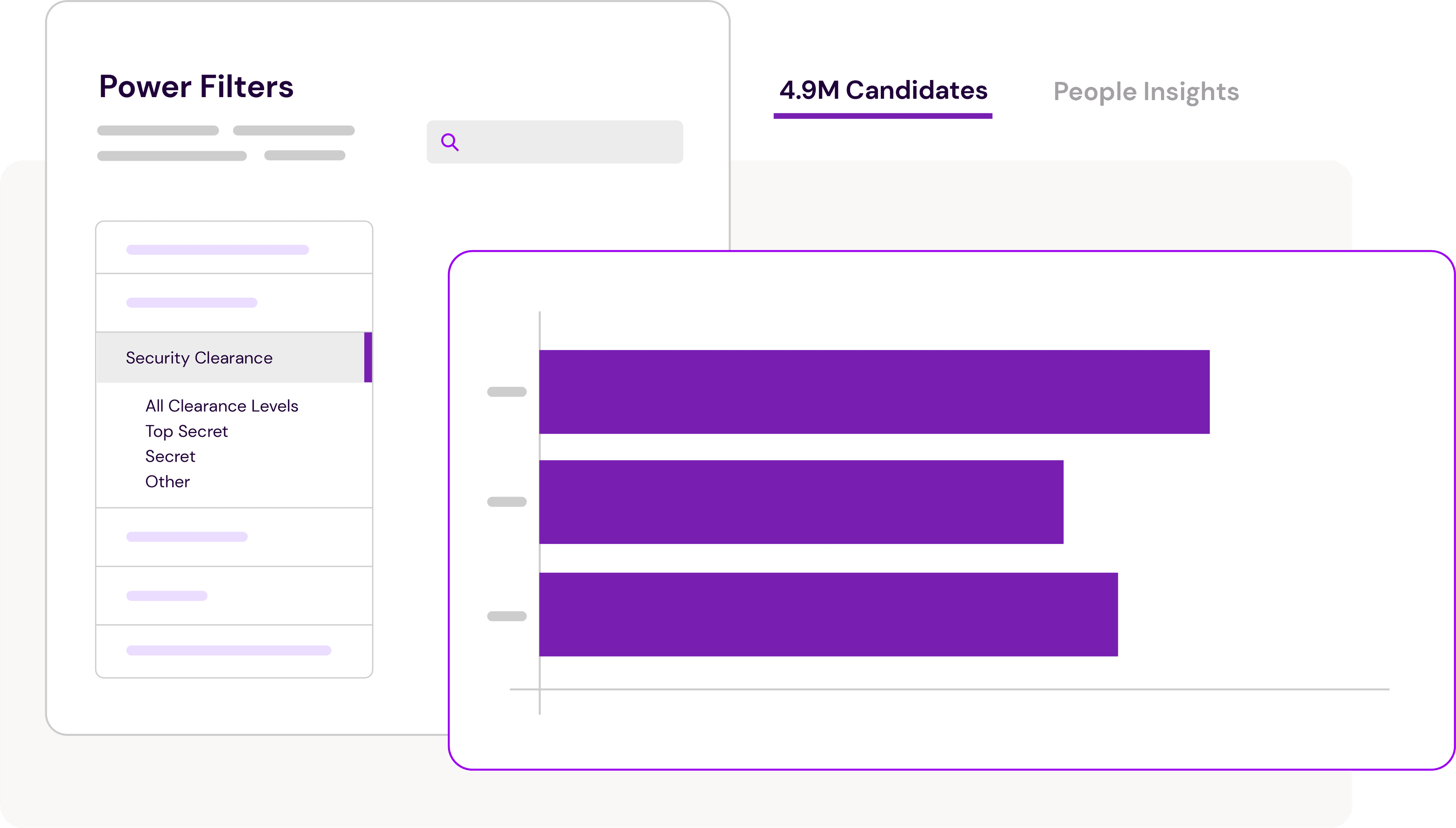 Find and engage with specialized and diverse talent, including 4.9 million cleared candidates—3x more than any other recruiting solution.