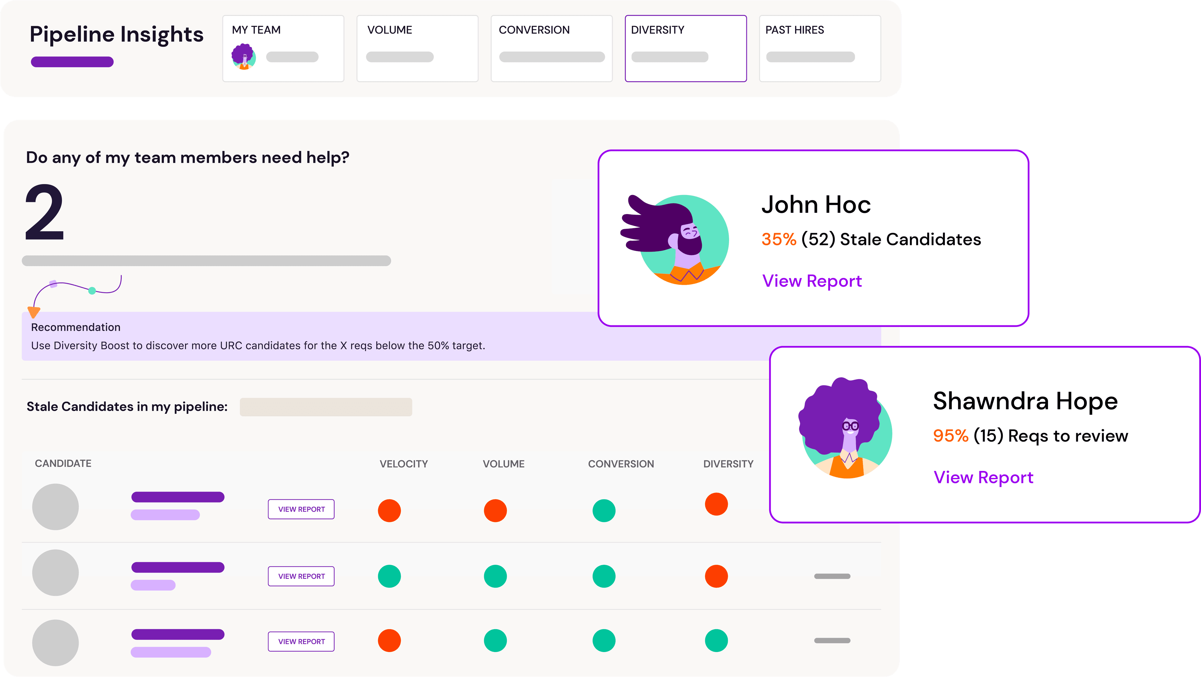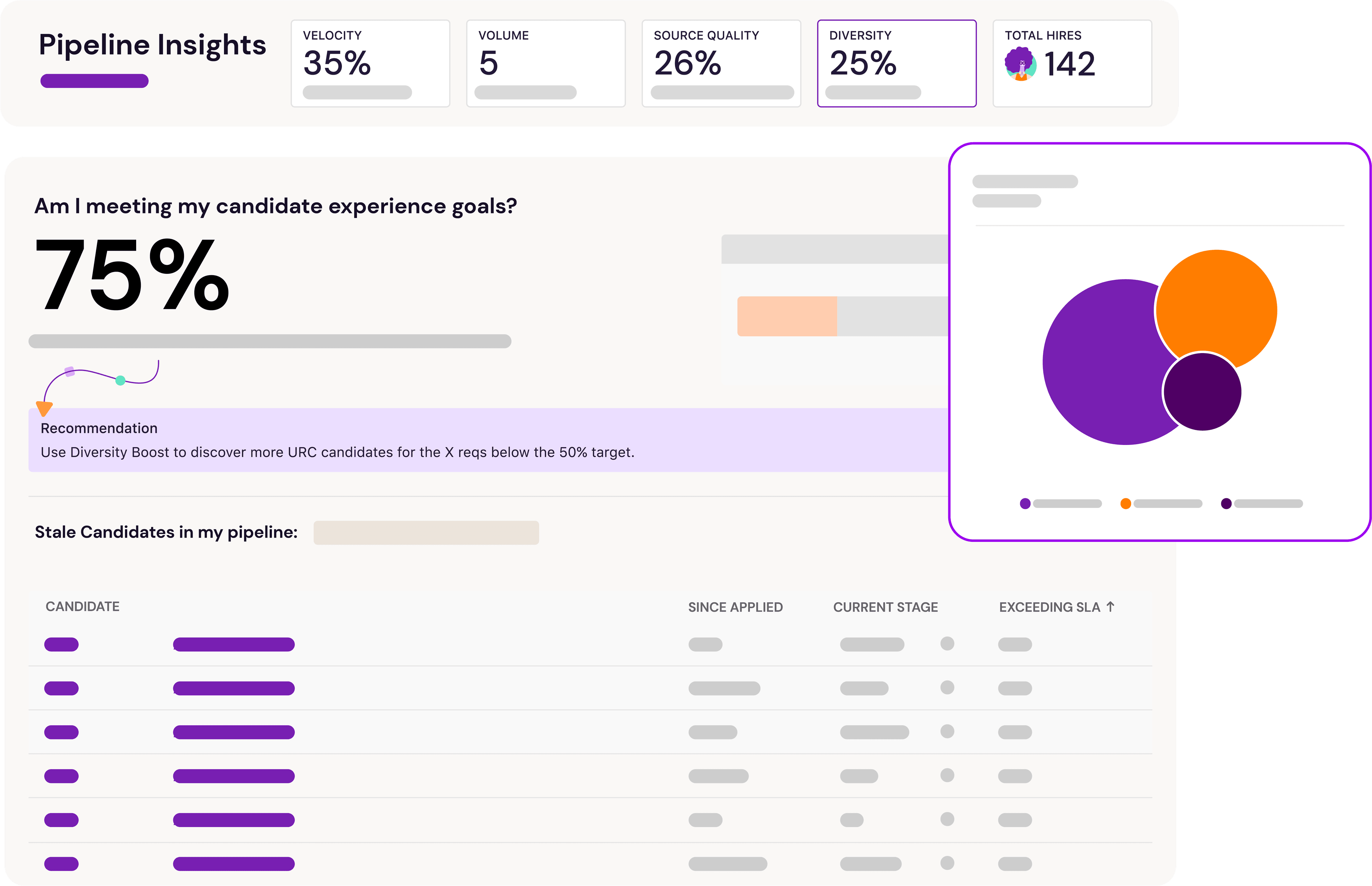 Gain end-to-end visibility into the conversion, volume, and diversity of your recruiting pipeline